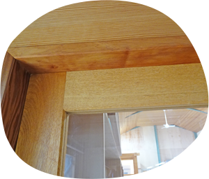 ⑥内装材に適している丸太が比較的直通なので製材した板の木目が真っ直ぐになり、丸太の木口も正円のものが多いので、木目と木目の間隔も均一に近く、木目もはっきり出てくるので、きれいなタモの板が出来上がります。そのタモ材を加工して、ドア枠、窓枠、カウンター材、テーブル材に利用すると高級感の溢れた内装に仕上がります。タモは、加工もしやすく、塗装をしても綺麗に塗装がのるので、内装材に適しています。