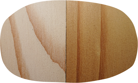 ベイマツの柾目で目の間隔が狭く、柾目がまっすぐで、淡い赤色から淡いだいだい色黄色のものは化粧材として利用されます。