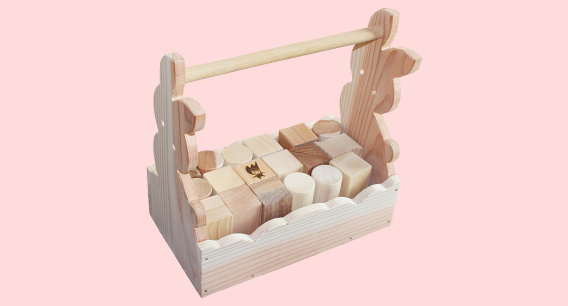 うさぎの入れ物に入った積み木です。かわいいうさぎと一緒に遊べます。