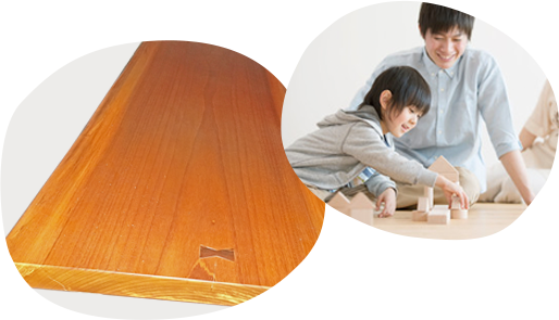重量は木材の中ではやや重い方で、堅さは中程度です。