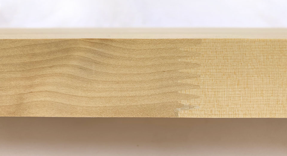 カバ桜集成材は、主に柾目、追柾です。すっきりとした集成材です。